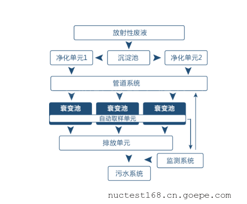 此放射性废液监测处理排放系统是针对产生放射性废液工作场所而专门设计开发的,符合国家环保要求标准,广泛应用于工业、医疗等放射性场所,并根据核医学核素治疗病房区域及门诊显像区域所使用放射性核素药物的半衰期长短,可分别设计并联的两套长、短半衰期核素衰变池。